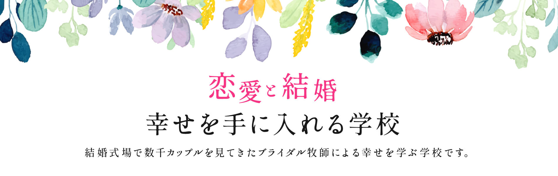 ここはブライダル牧師といっしょに愛と幸せを学ぶスクールです。街コンではたどり着けない愛の本質について、恋愛と結婚での幸せの知識について、そして仲の良い夫婦について学びます。